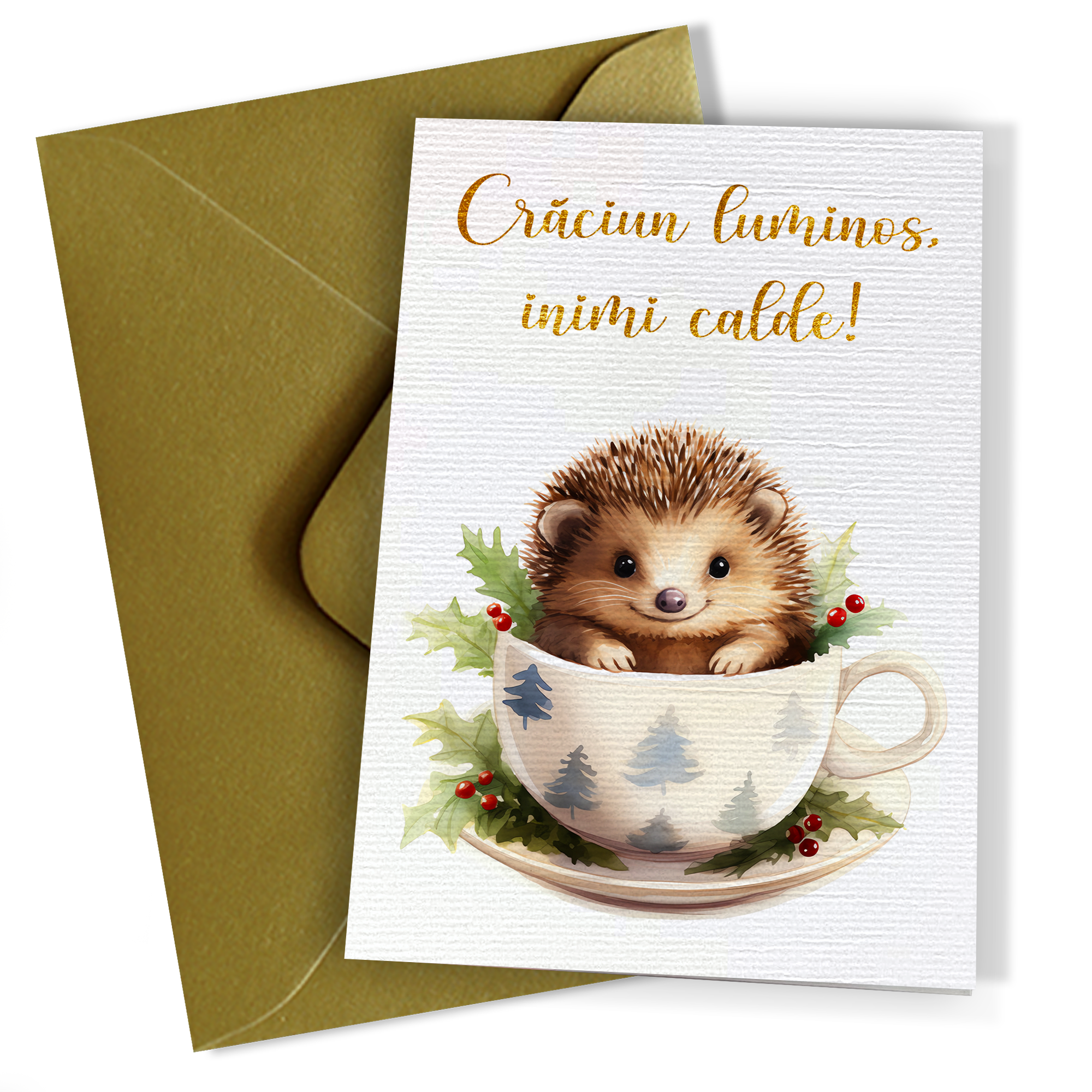 Felicitare de Craciun premium 10×15 cm cu plic auriu inclus – FPC-24