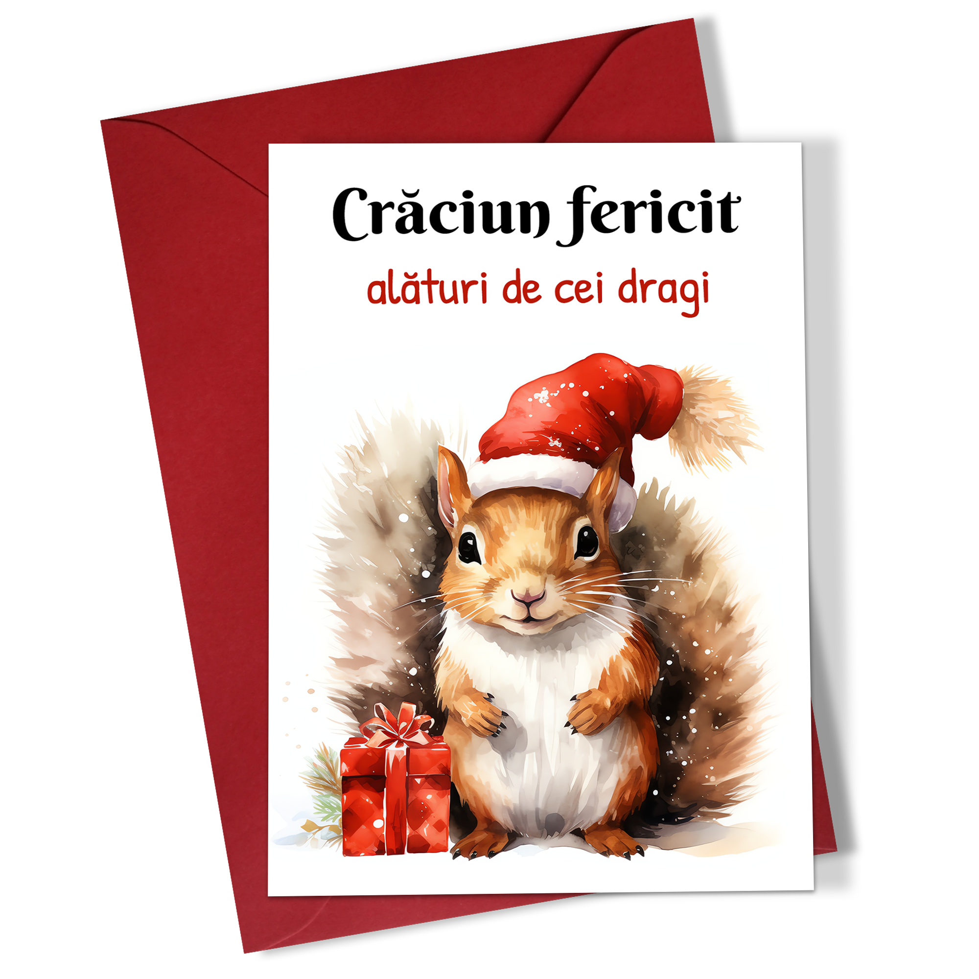 Set 5 felicitari de Craciun 10×15 cm cu plic rosu inclus – Veverita – FC-125
