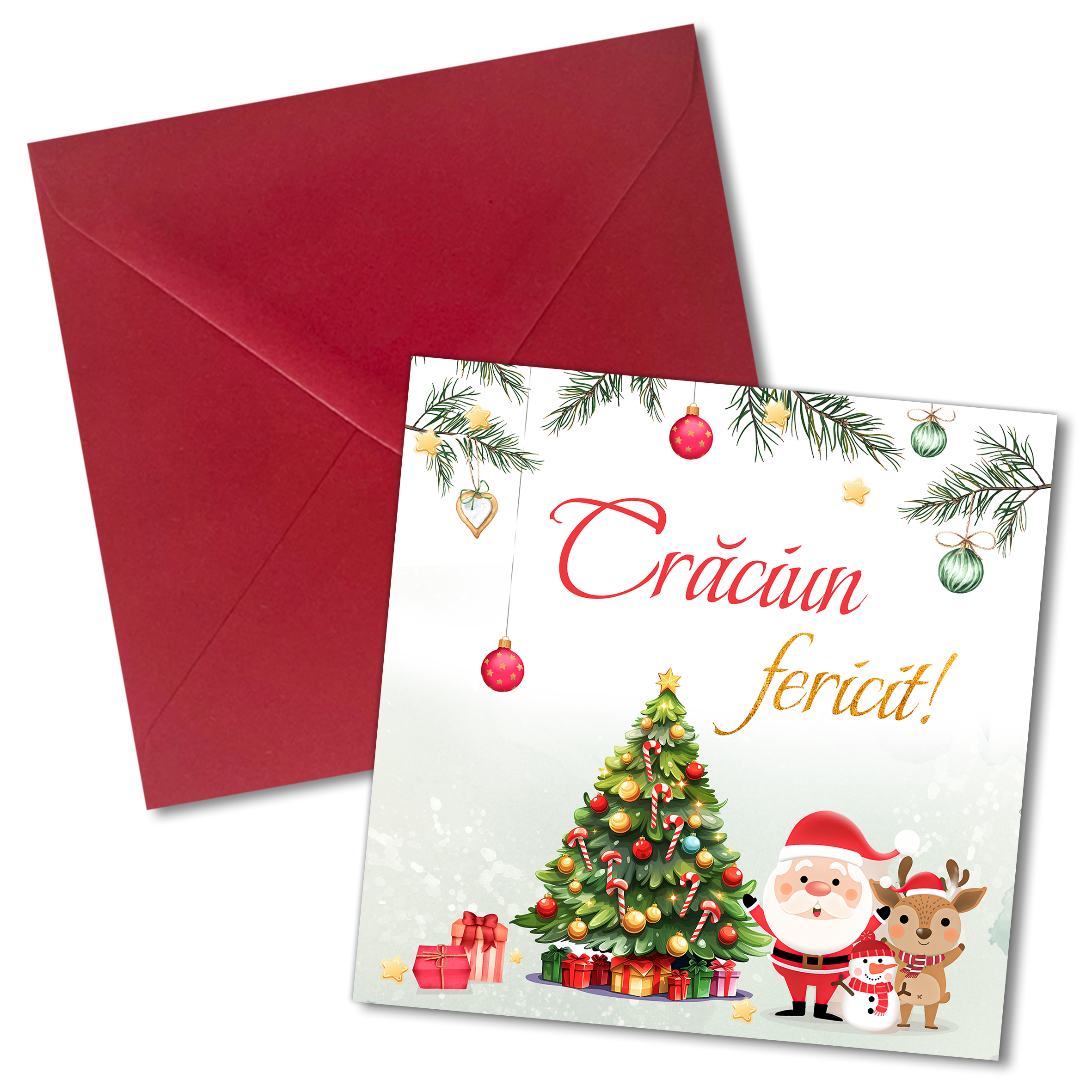 Set 5 felicitari de Craciun 13×13 cm cu plic rosu inclus FCP-16