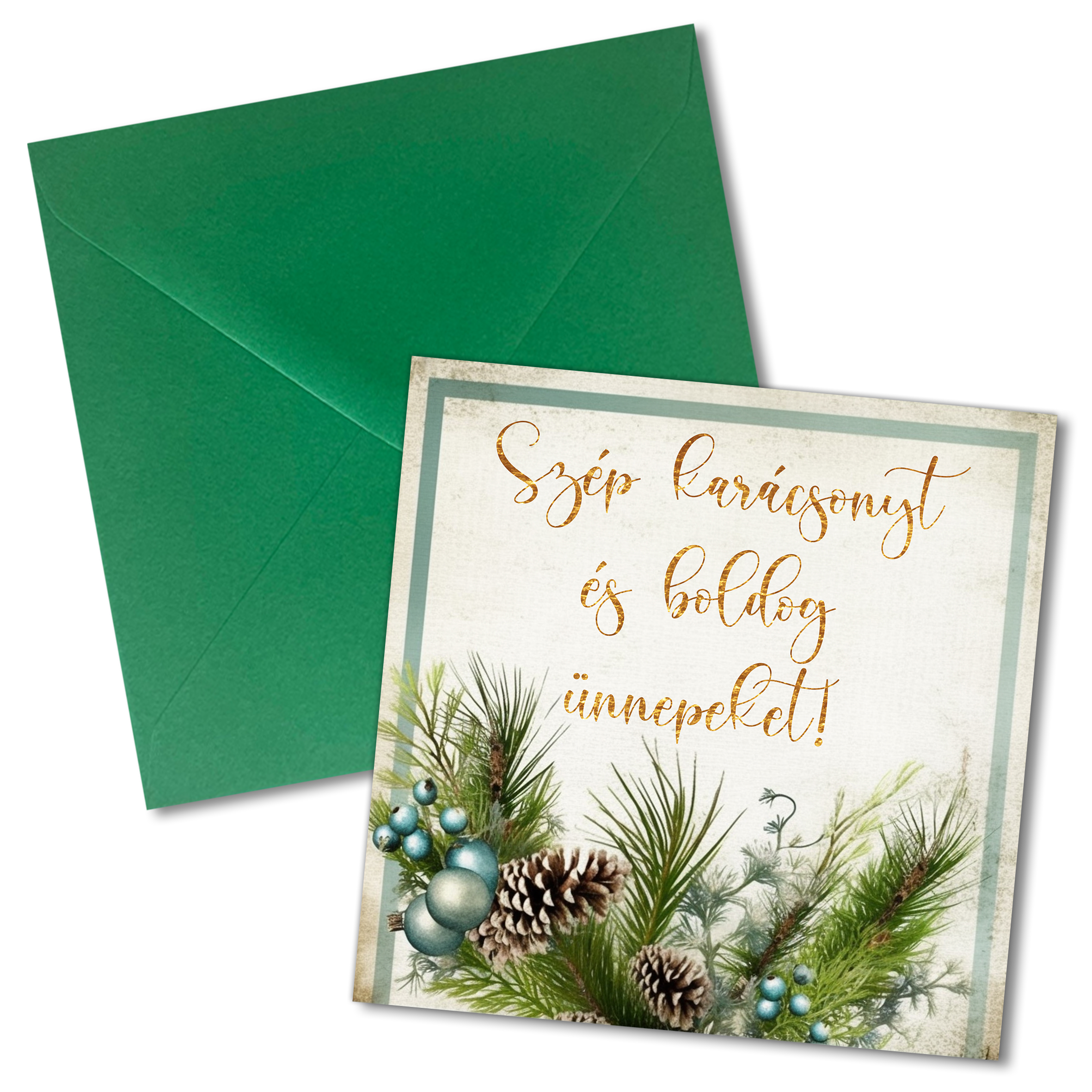Set 5 felicitari de Craciun in maghiara 13×13 cm cu plic albastru inclus – Boldog karácsonyt – FCP-09hu