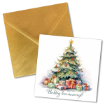 Acest set de 5 felicitări, cu dimensiuni de 13×13 cm, vine cu plicuri incluse, oferind o modalitate elegantă și personală de a transmite urări festive. Fiecare felicitare prezintă un design unic, capturând esența sărbătorilor de iarnă, de la peisaje însuflețite de zăpadă la simboluri tradiționale ale Crăciunului. Calitatea superioară a hârtiei asigură o scriere plăcută și o prezentare deosebită. Aceste felicitări sunt perfecte pentru a împărtăși magia și bucuria Crăciunului cu familia, prietenii și colegii.